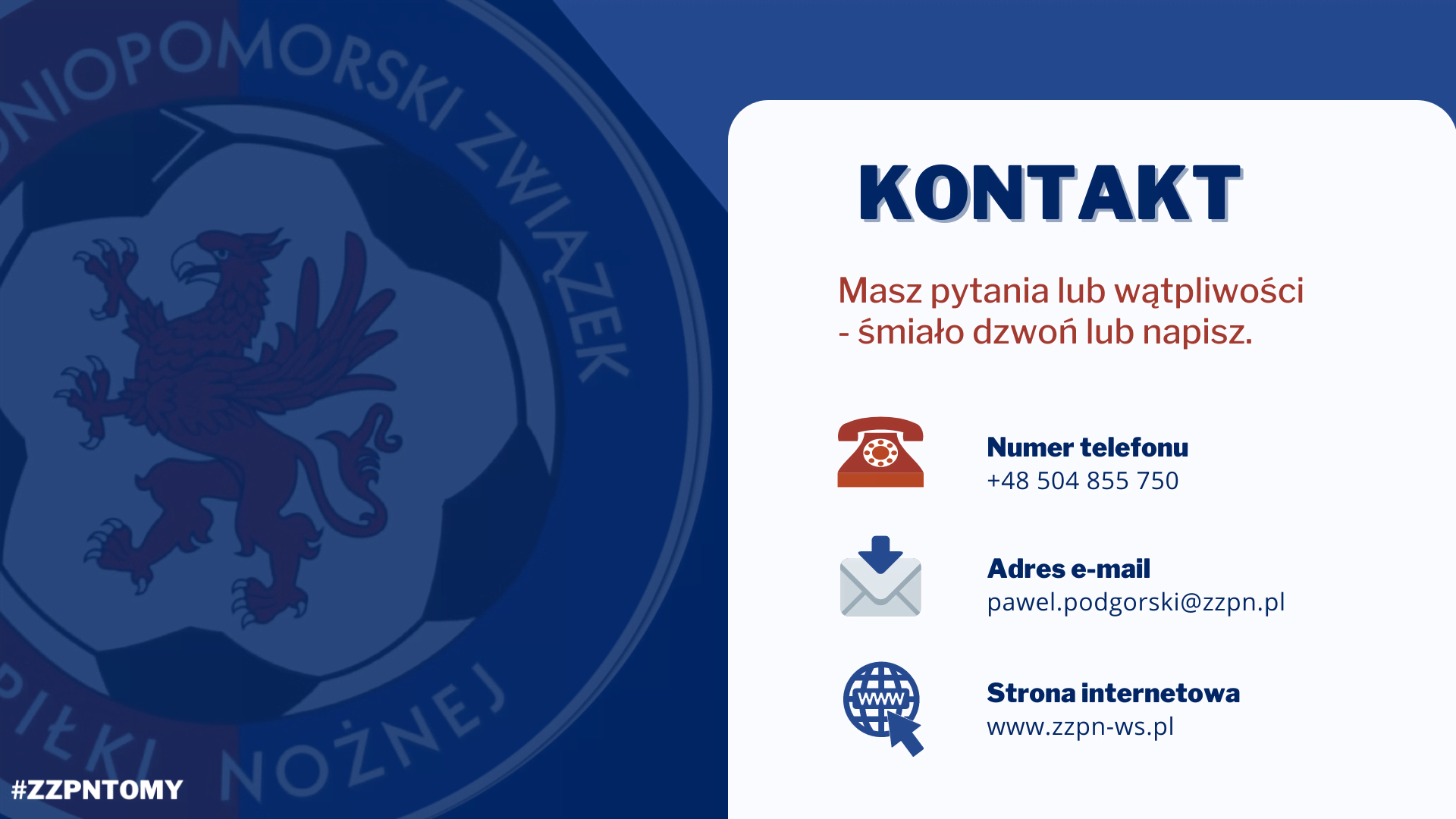 W imieniu Wydziału Szkolenia Zachodniopomorskiego Związku Piłki Nożnej serdecznie zapraszam do udziału w kursach trenerskich organizowanych zgodnie z obowiązującymi wytycznymi PZPN oraz konwencją UEFA. Podstawowym warunkiem rozpoczęcia kształcenia na kursie trenerskim dla początkujących UEFA C jest posiadanie min. wykształcenia średniego oraz zaświadczenia o niekaralności KRK.
